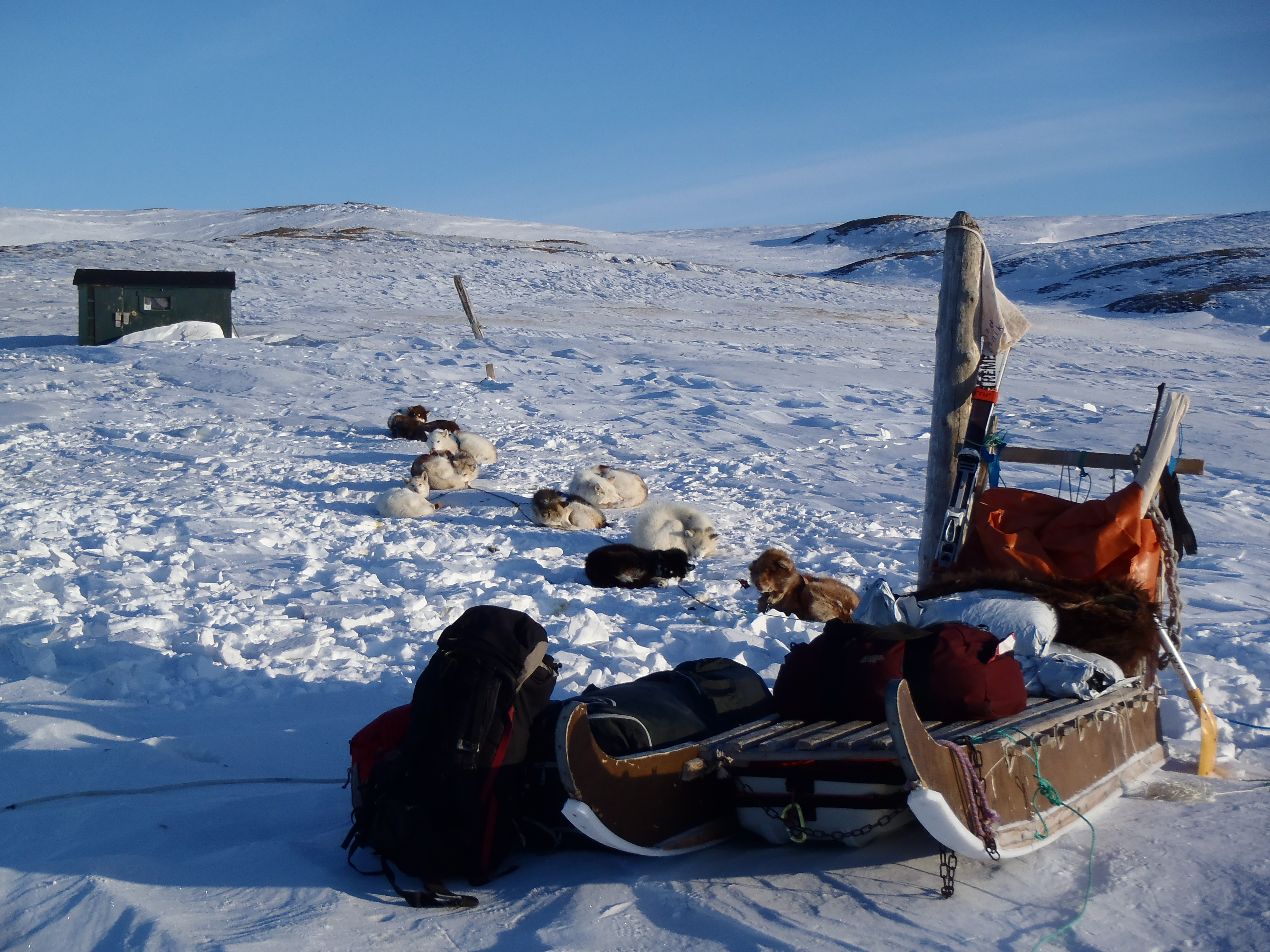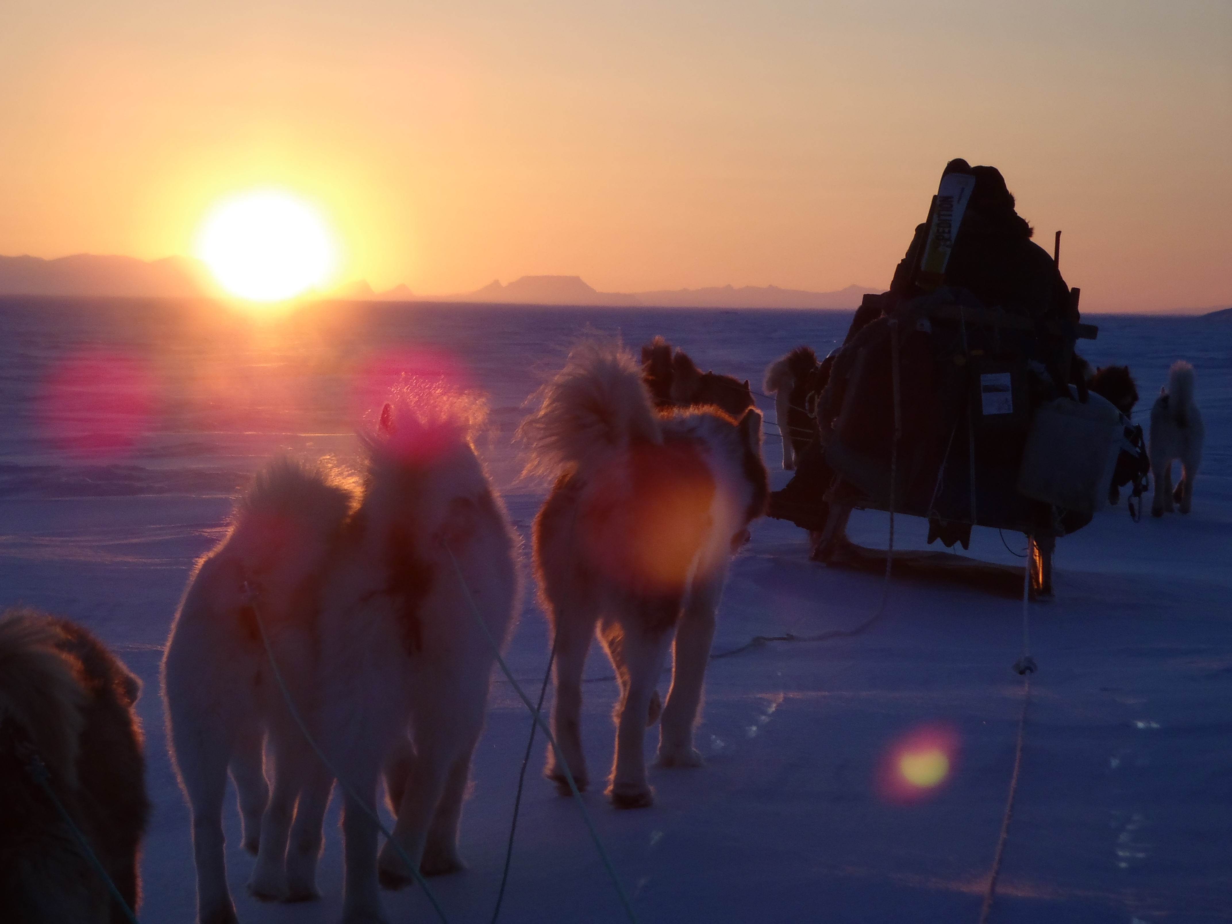 The trip started of by 3 days of dogsleding with a couple from Germany. We were supposed to transport them and their gear as far as about 10-20 km north of Apaalardaai. From there, they would continue on their own with one of my dogs (Kaju), skiing, while we were planning to hunt muskox in the nearby hills of Jameson Land. And so we did 🙂