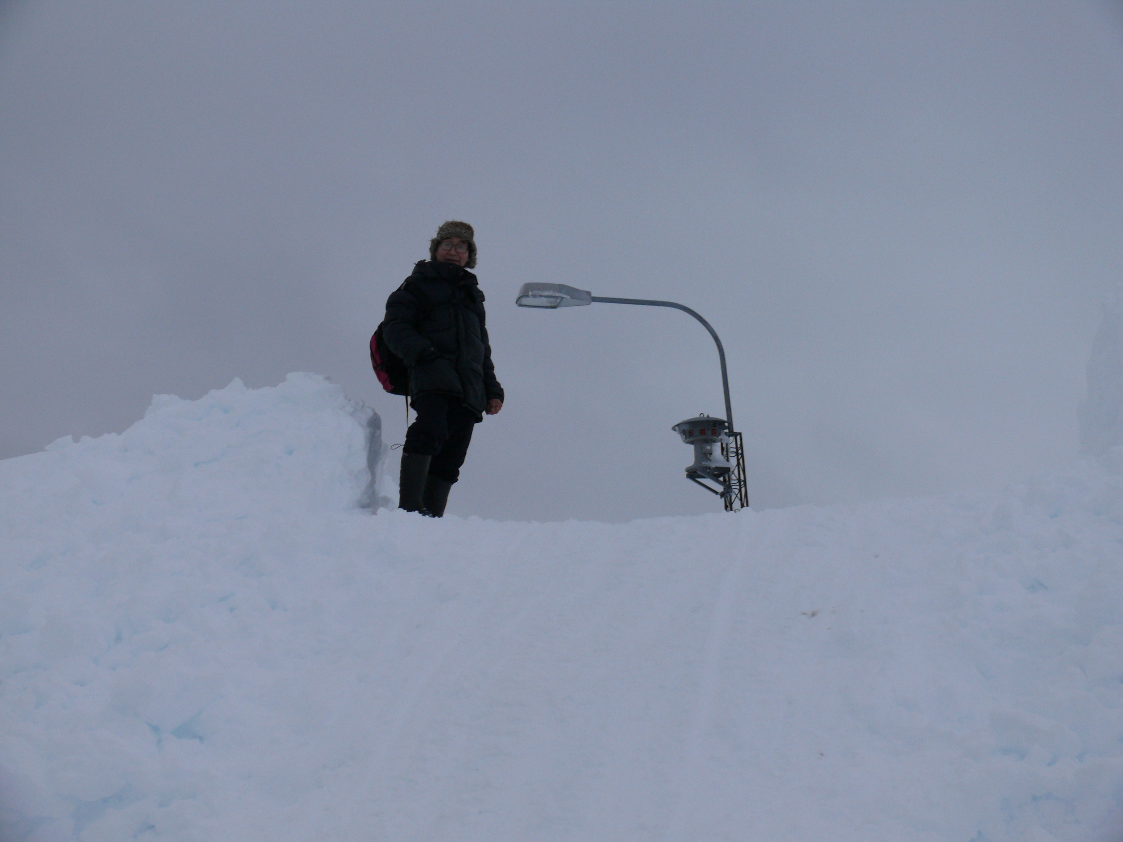 Walking up this new “hill” by the former post office, towards the church (hidden behind the snowdrift), it felt as if we might be able to touch the street lamp!
