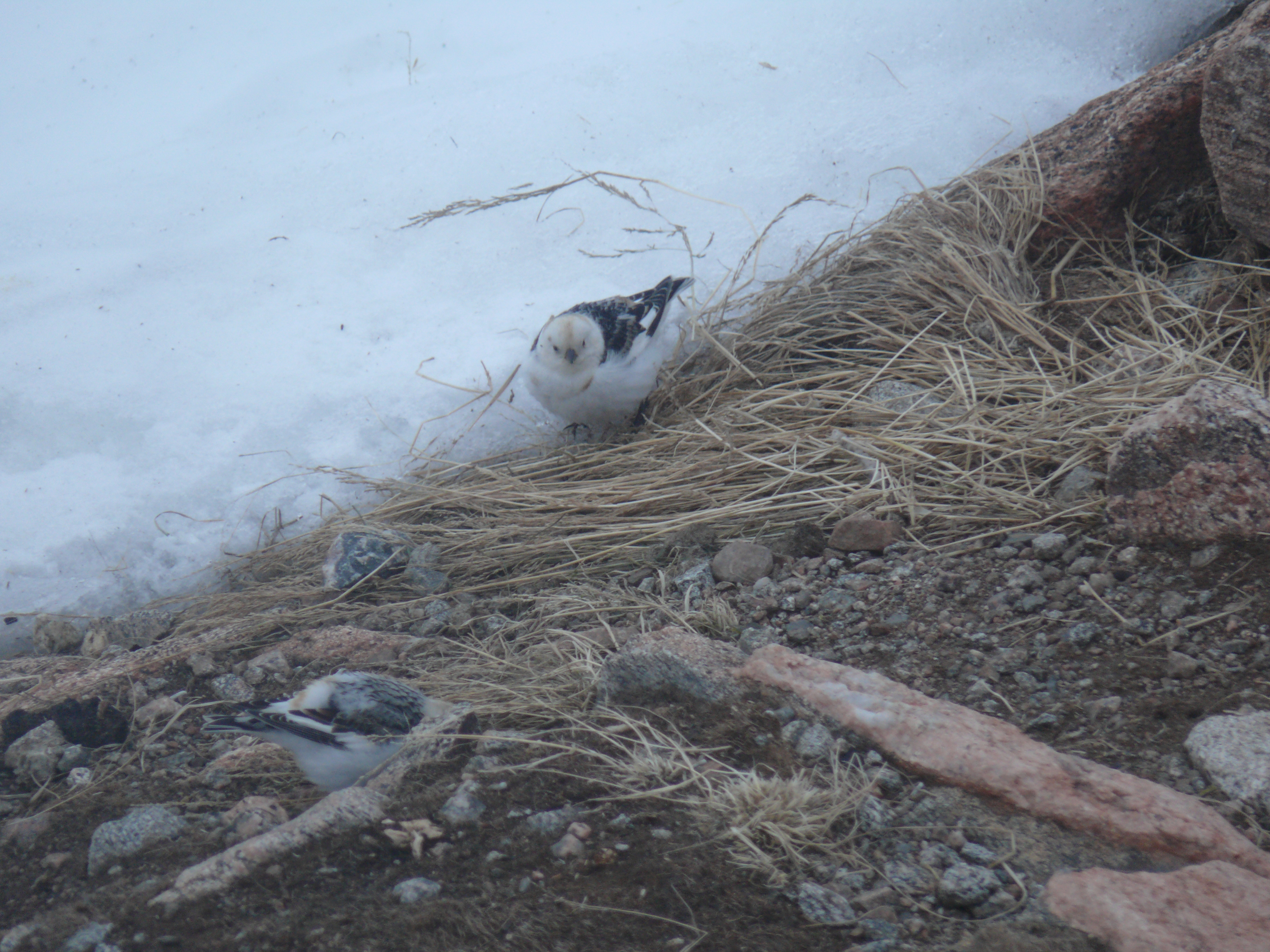 But it is springtime, even in the Arctic! We might not smell it that much yet, but we certainly hear it! These cute little birds, the snow buntings, often sit directly underneath our living room window.