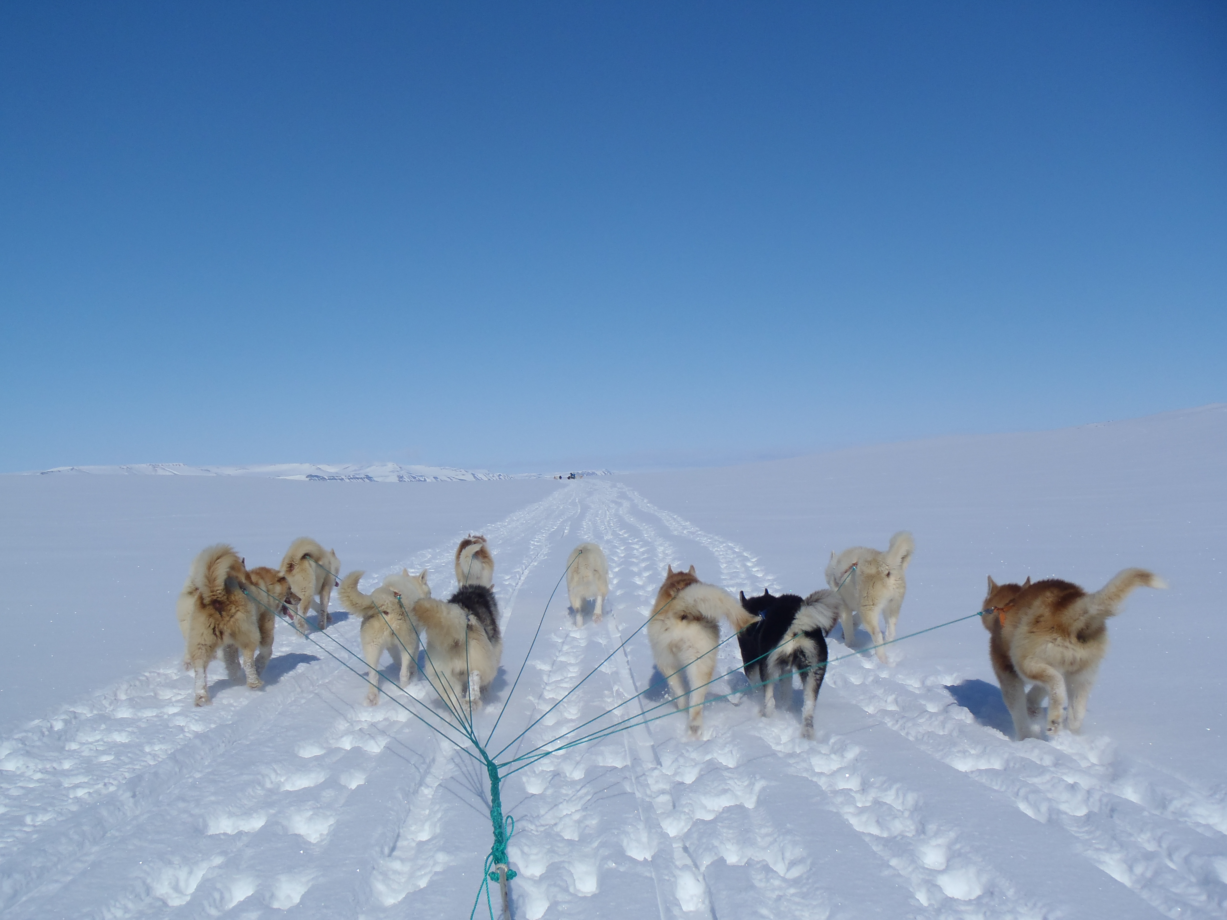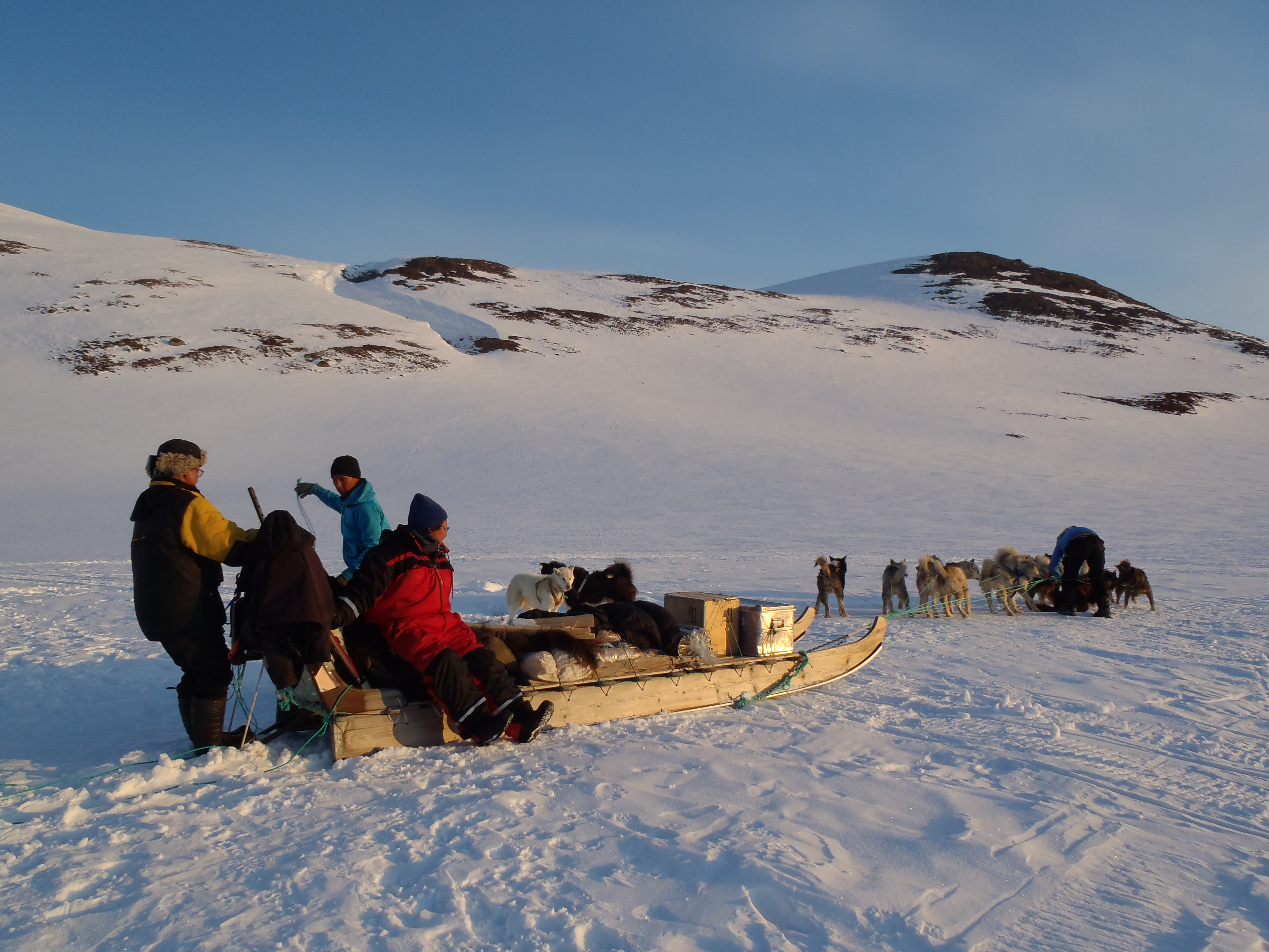 People were coming and going. At this time of the year, we often travel at night, since it doesn`t get dark any more. At night, the sunlight is less intense, and the temperature drops. That means that the snow and ice is more frozen than at daytime, which makes it easier for the dogs to pull the sledge.