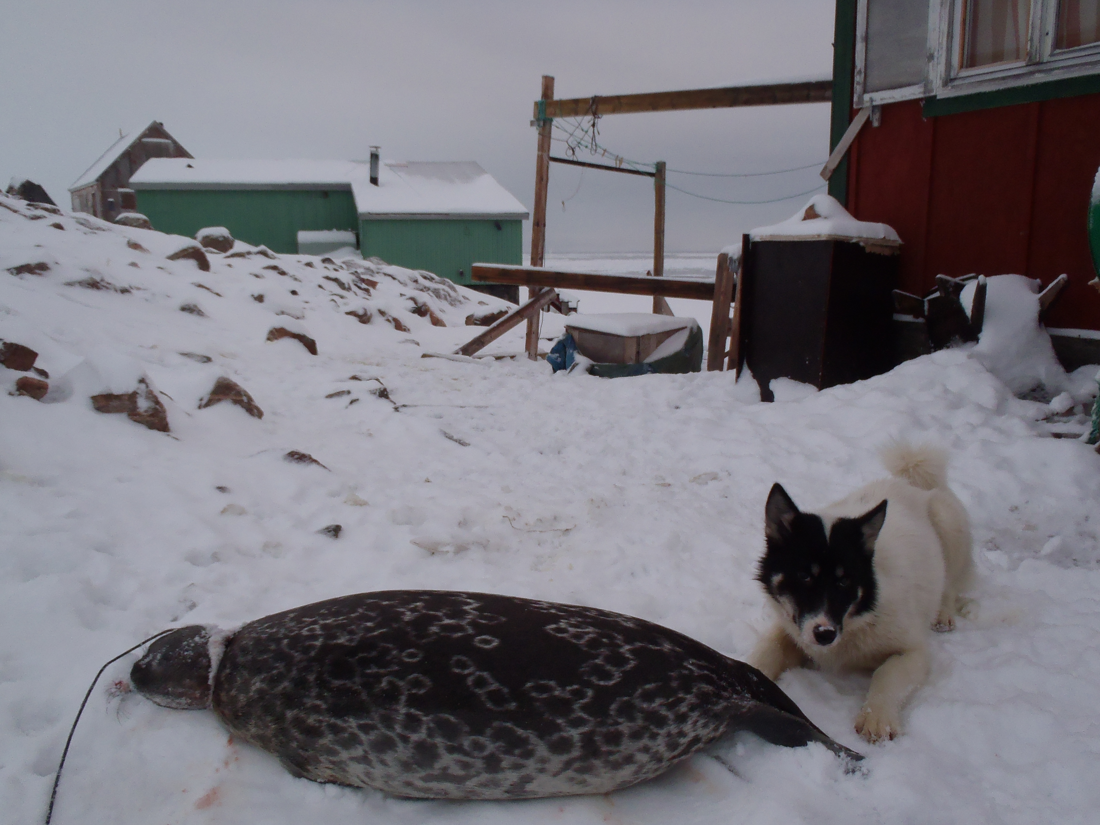 Ingkasi had shot a seal, and one of our puppies “looked after it” carefully from the very moment he brought it home until it was taken apart to be eaten later that day.