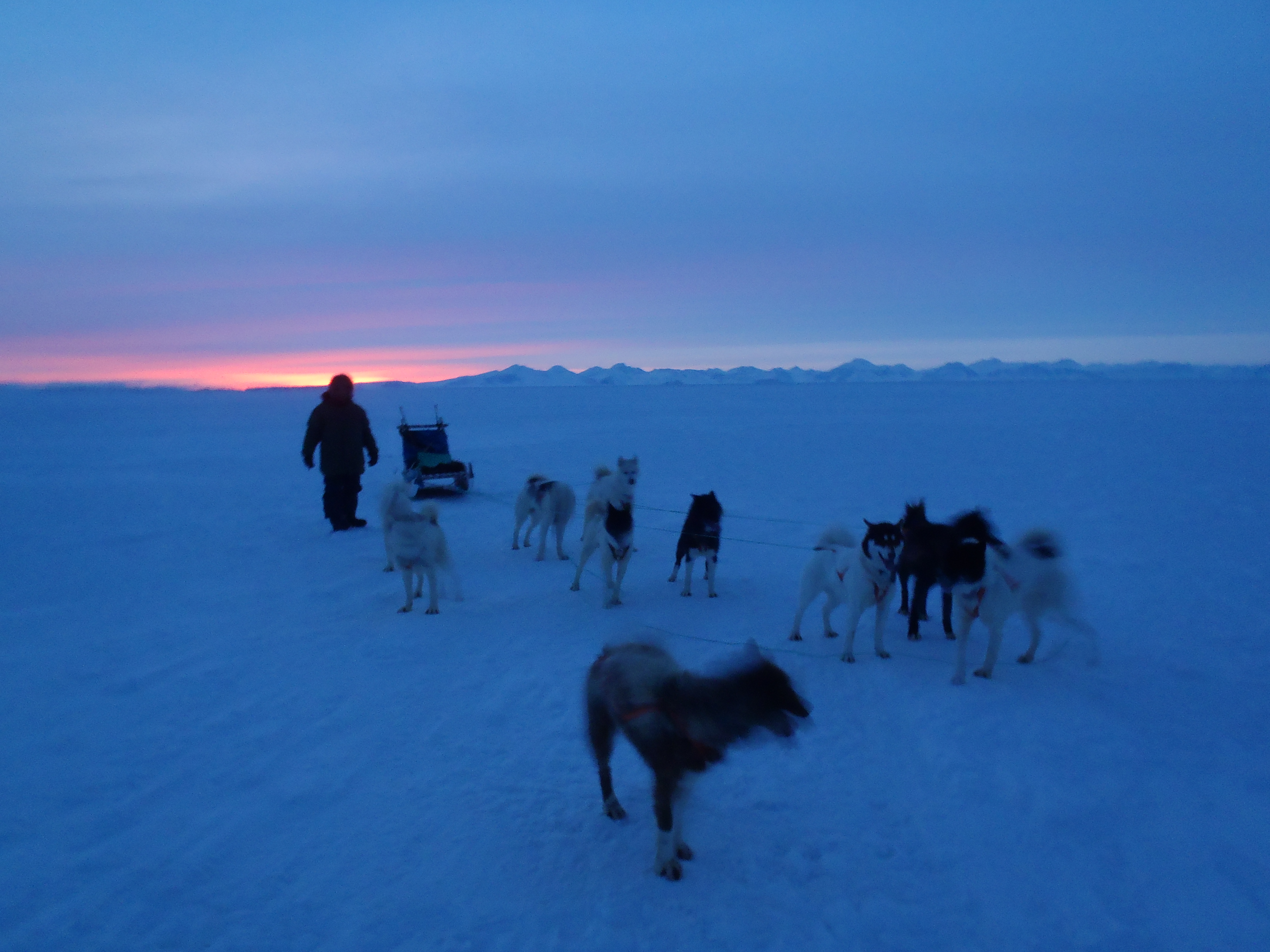 I did hold on to a rope behind the sledge for the last few hundred meters back to Ittoqqortoormiit.