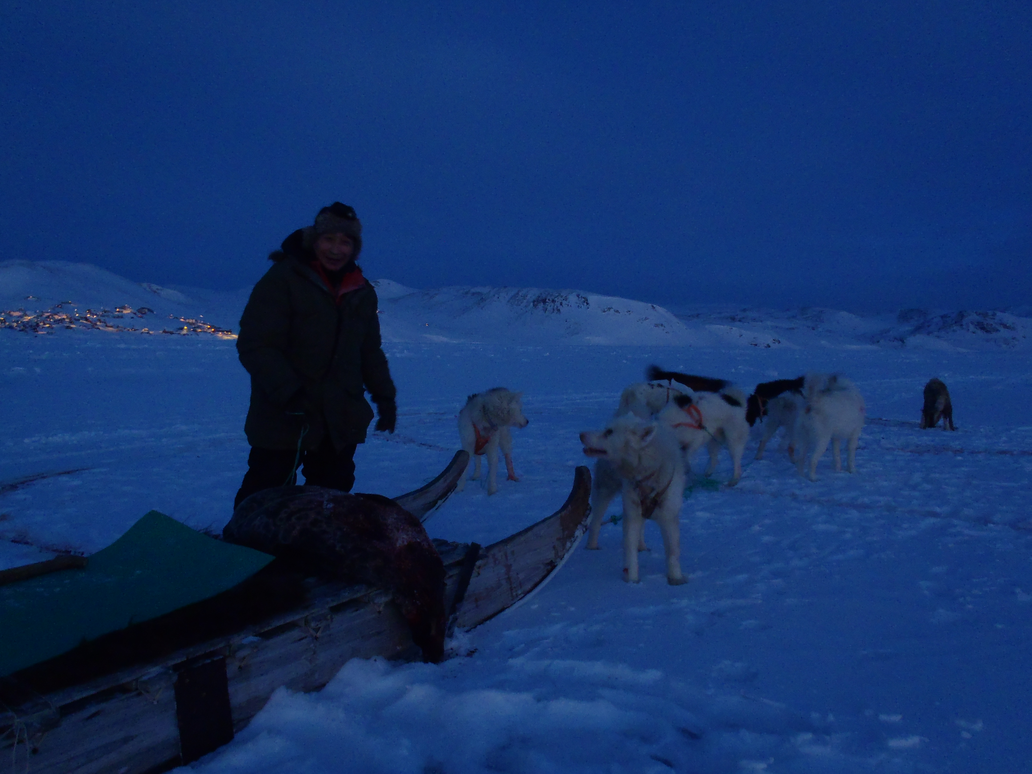 We celebrated the first day of the year by going out to hunt seals. With Ingkasis dog-team, we searched for breathing-holes on the sea-ice close to Ittoqqortoormiit.