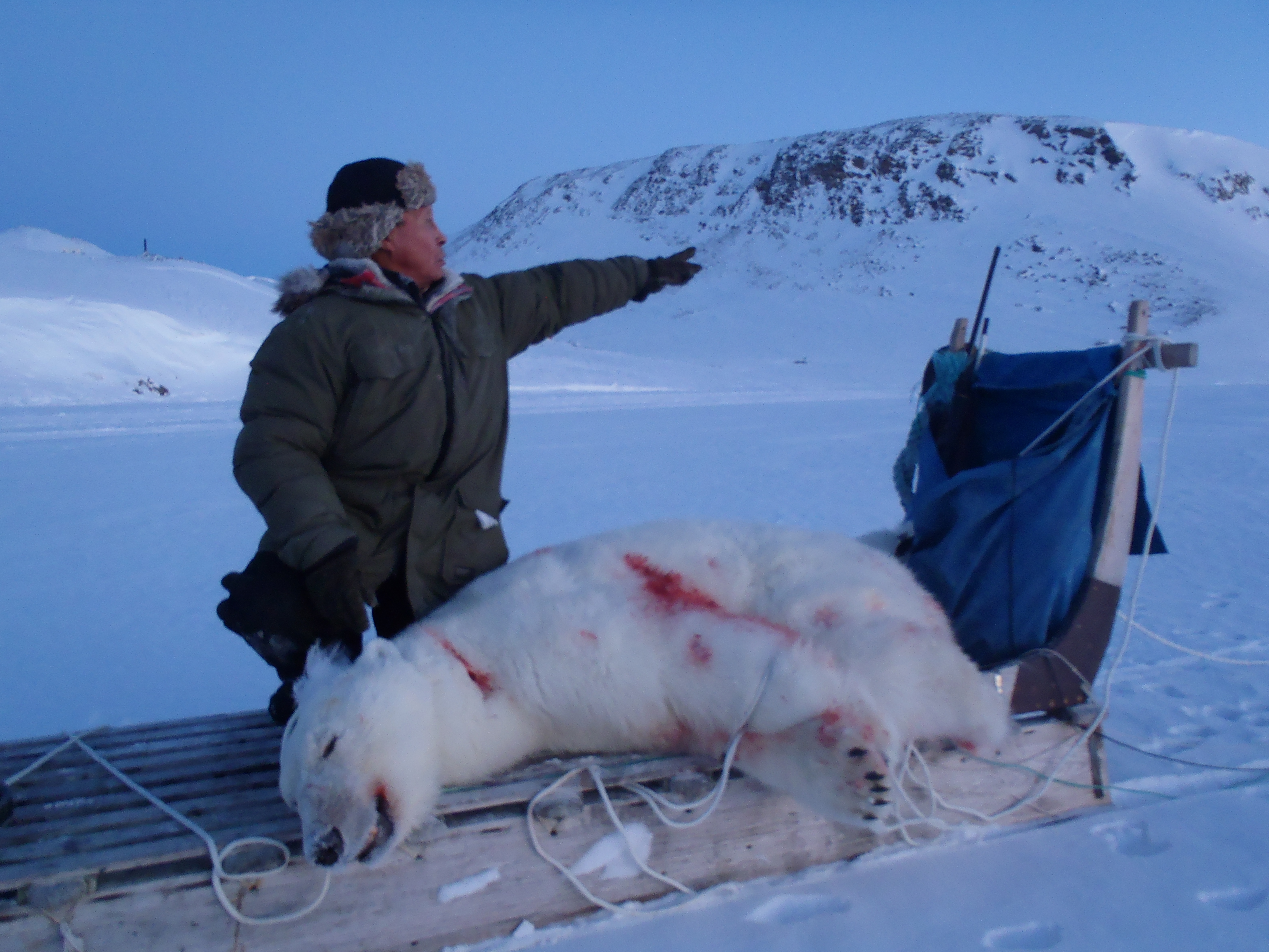 Two days later, Ingkasi went out in the morning to look after his seal-nets. A few hours later, I got a call from him, telling me that he had just shot a polar bear! I went out to meet him on the ice outside of town, where he began to explain what had happened.
