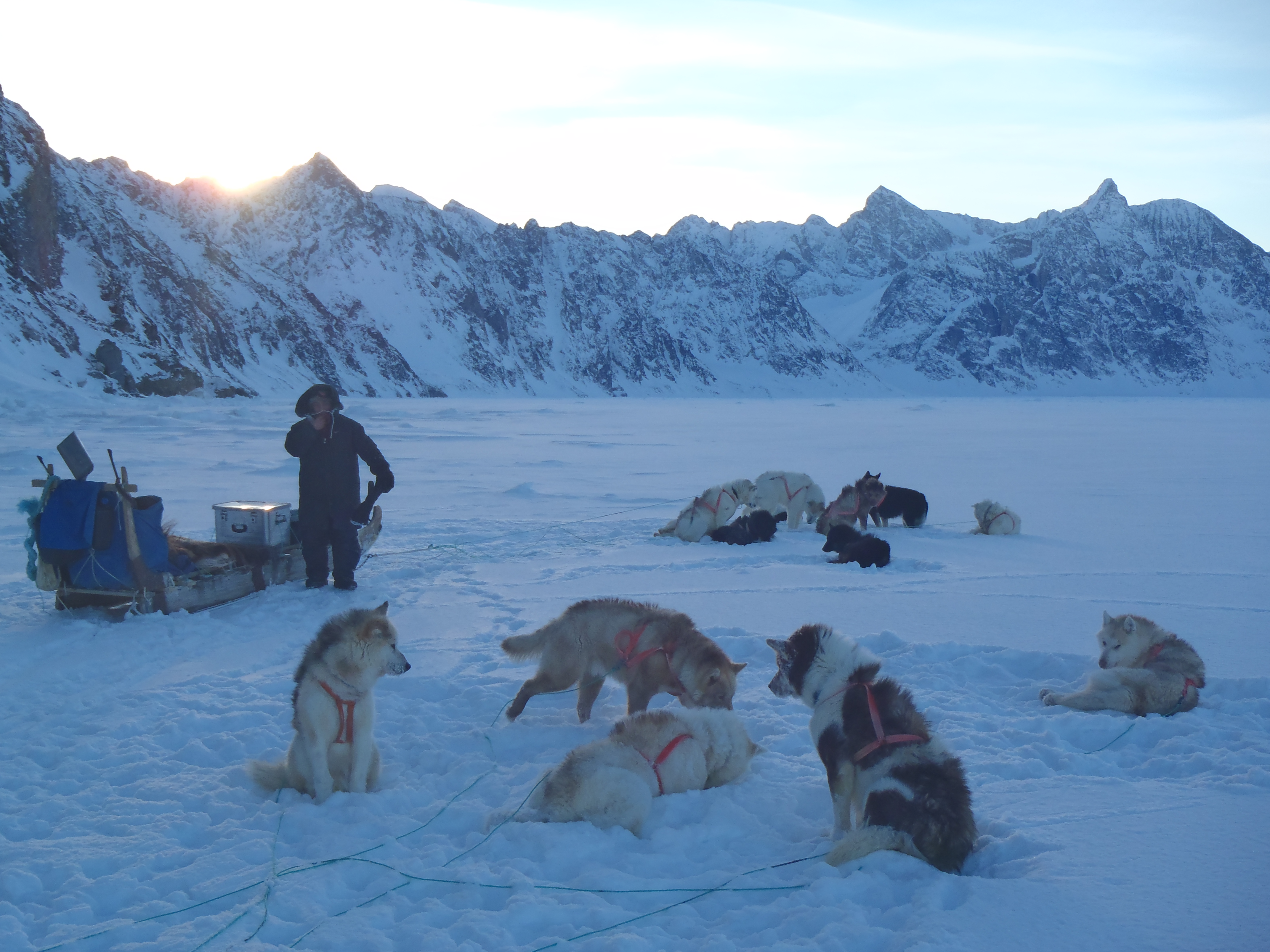 Ingkasis dogs in front of the glacier – at the bottom of Lillefjord
