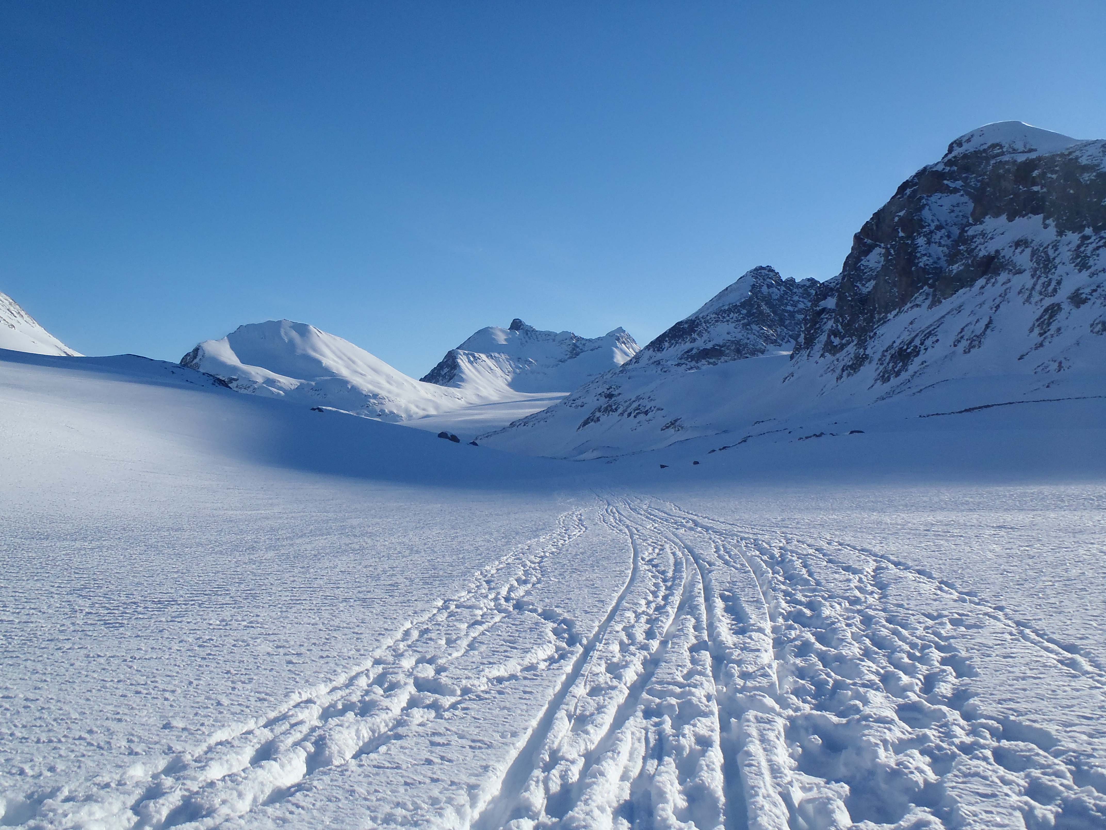 During our stay at Kap Høgh, the sea-ice further south, between Snuden and Rathbone Ø, unexpectedly broke off. That made it impossible for us to travel back to Ittoqqortoormiit along the coast. Instead, we had to sled north-west, through Horsens Fjord, Kalkdal and Hurry Fjord to return home.
